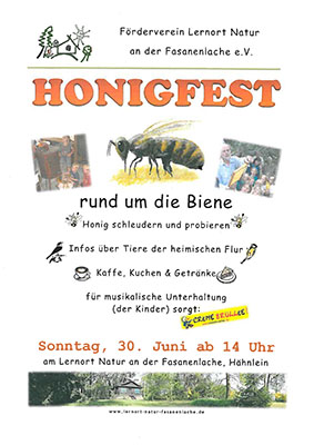 Der Alsbacher-Hähnleiner „Lernort Natur e.V.“ feiert am 30. Juni an der Fasanenlache sein Honigfest mit Imker Dieter Baethge und der Band “Creme Brüllee”