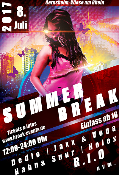 „Summer Break 2017“ am 8. Juli auf der Wiese am Rhein in Gernsheim