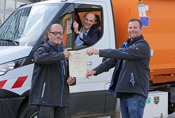 25 Jahre im öffentlichen Dienst: Felipe Velez Gomez (li.) feierte kürzlich sein silbernes Dienstjubiläum. Mark Trautmann, Geschäfstführer des ZKD (re.) und Verbandsvorsitzender Dr. Holger Habich (mi.) gratulierten dem Jubilar. Foto: soe