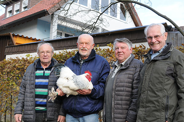 Erster Vorsitzender Hans Flauaus (2.v.li.) freute sich über die zahlreichen Besucher und über den Züchterbesuch aus der Nachbargemeinde Schwanheim, die zur Lokalschau des GZV kamen. Foto: Vera Samstag