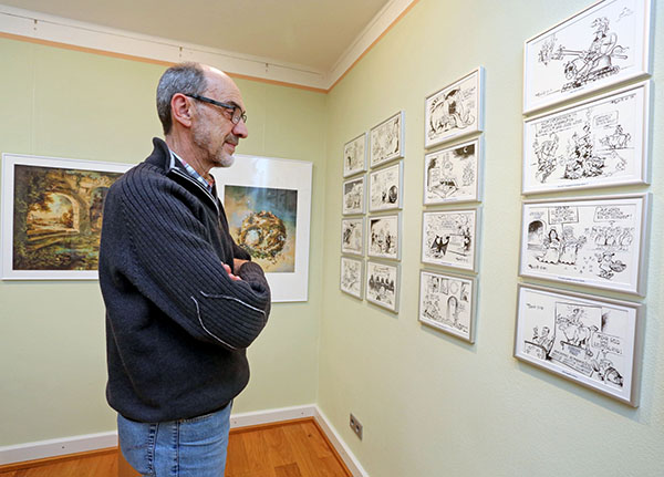Politisch, tagesaktuell und auf den Punkt, dafür stehen die Karikaturen des bekannten Karikaturisten Horst Haitzinger. Schon viele Besucher haben die interessante Ausstellung besucht. Foto: soe