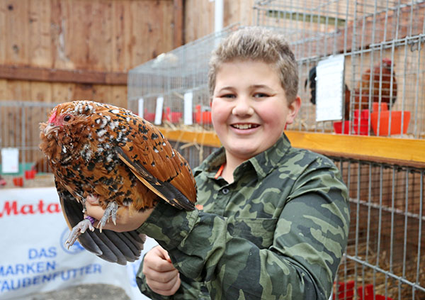 Jan Felter erhielt für seine Antwerpener Bartzwergen die Bewertung „hervorragend“. Der Nachwuchszüchter wurde in diesem Jahr zum vierten Mal in Folge Vereinsmeister. Foto: soe