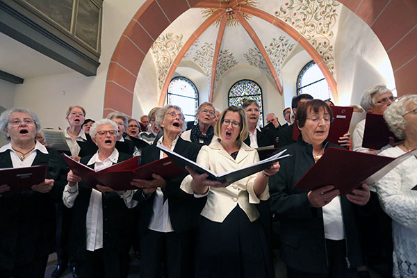 Ein Projektchor unter der Leitung von Heike Städter beeindruckte das Publikum mit der Aufführung der „Deutschen Messe“ von Franz Schubert im Festgottesdienst am 27. Oktober in der Alsbacher Kirche. Foto: soe