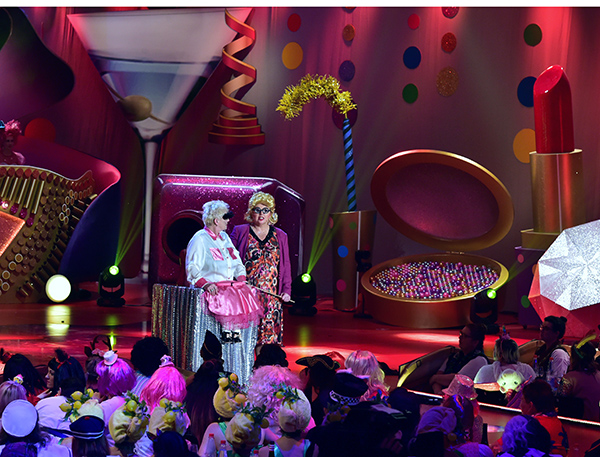 „Wir haben den Saal gerockt.“ Sassa (Michaela Hartnagel-Keil, re.) und Sossi (Ulla Freudenberger, li.) trafen mit ihrer Nummer genau ins Schwarze. Foto: hr/ Norbert Klöppel