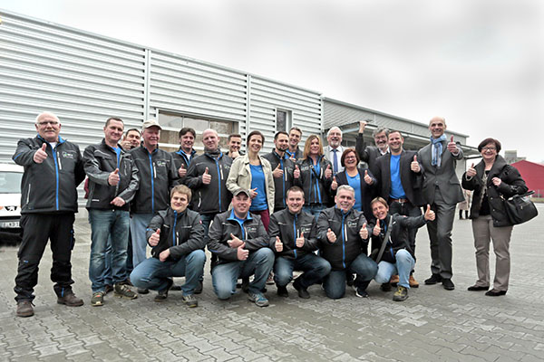 Über ihre neue moderne Basis freuen sich die Mitarbeiter des ZKD zusammen mit ihrem Geschäftsführer Mark Trautmann und den Bürgermeistern Georg Rausch und Holger Habich, bei der Eröffnung des neuen gemeinsamen Bauhofes. Foto: soe