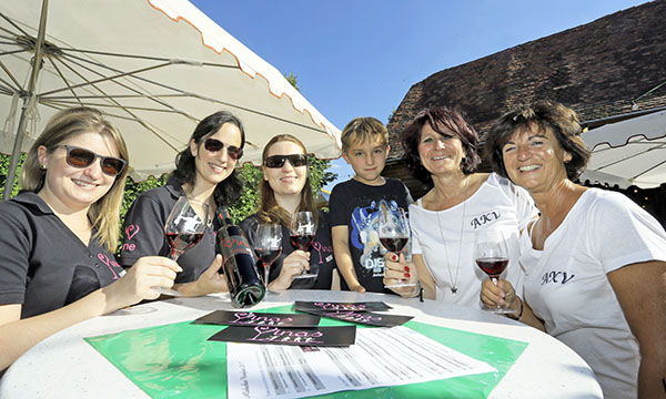 Der Alsbacher Kerweverein richtet auch das Alsbacher Weinfest aus. Hier präsentierten die „Vinas“ auf dem Alsbacher Weinfest 2017 ihren neuen Wein. Foto: soe