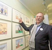 72 plakative und lustige Cartoons von Uli Stein hat Konrad Hoppe vom Museumsverein Alsbach-Hähnlein zusammen mit seinen Vereinskollegen für die Ausstellung im „Museum in der Anstalt“ organisiert. Foto: soe