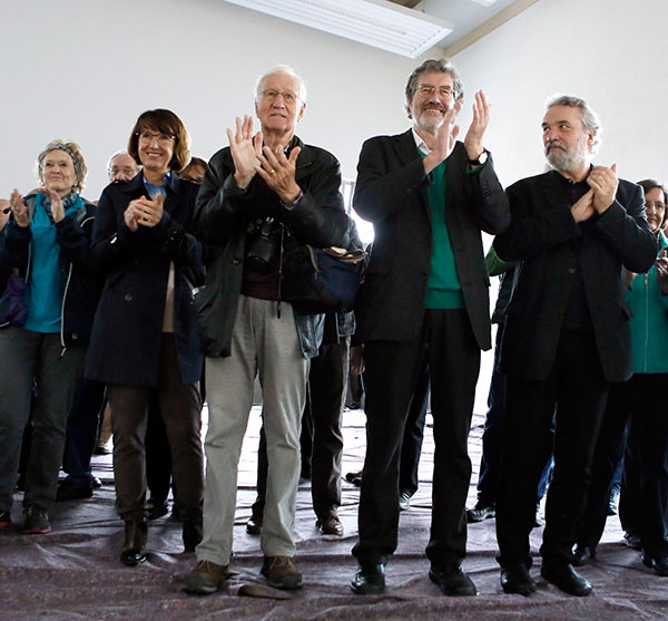 Viel Beifall gab es bei der Feierstunde zur Einweihung der neuen Gymnastikhalle von den Gästen, Alsbach-Hähnleins Bürgermeister Georg Rausch (mi.) und dem Kreisbeigeordneten Christel Fleischmann (re.). Foto: soe