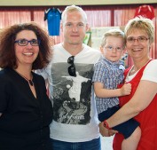 Ein schönes Bild fürs Familienalbum: Miriam Rettig, Birgit Langer und Luca mit Ehrengast Sebastian Rode.