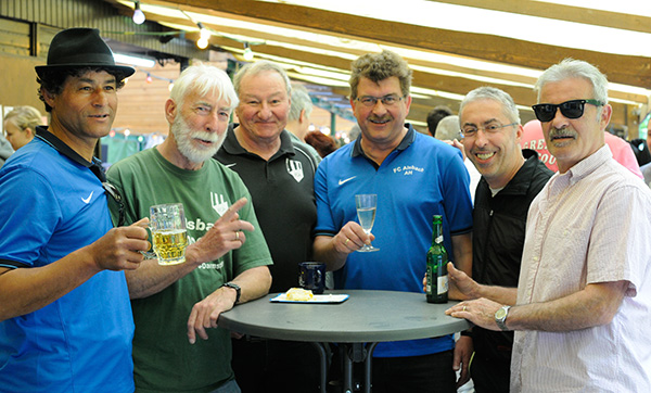 Sichtlich zufrieden mit dem Verlauf des Waldfestes sind Fethi Bouhamda, Peter Schaffner, Friedel Rothermel (Rechner), Manfred Nickels (1. Vors.), Ingo Nestel und Walter Ehmig. Foto: E. Wicht