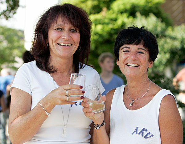 Zum emsigen Vorbereitungsteam gehören natürlich auch Katja Schäfer (2. Vorsitzende, li) und Vorsitzende Irmgard Winczy-Bloos. Foto: soe
