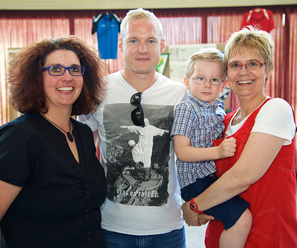 Ein schönes Bild fürs Familienalbum: Miriam Rettig, Birgit Langer und Luca mit Ehrengast Sebastian Rode.
