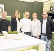 Höchste Qualitätsansprüche, individuelle Beratung und beste Preise für die Wunschküche bieten die Küchenexperten von „Küche 3000 Bergstrasse“. Unser Foto zeigt (v.li.) Sergej Prokofcuk, Julia Peters, Inhaber Eugen und Olga Kolbe und Mario Rang. Foto: soe