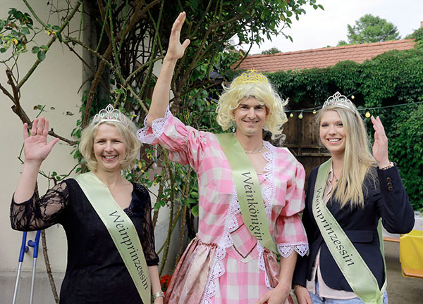 Voriges Jahr stattete sogar die Alsabcher Weinkönigin (Timo Seitz) mit seinen Weinprinzessinen dem Alsbacher Weinfest einen Besuch ab. Foto: soe