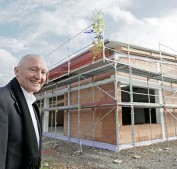 Der erste Vorsitzende des TV Alsbach Otto Berner freut sich über die jetzt im Rohbau fertiggestellte Gymnastikhalle. Foto: soe