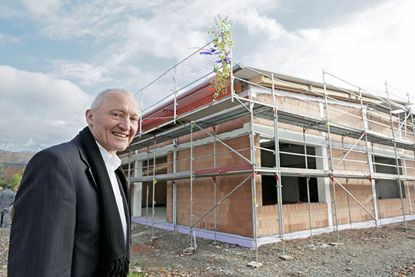 Der erste Vorsitzende des TV Alsbach Otto Berner freut sich über die jetzt im Rohbau fertiggestellte Gymnastikhalle. Foto: soe