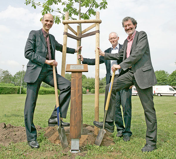 Zum Jubiläum des Abwasserverbandes AZH pflanzten die Bürgermeister von Alsbach und Zwingenberg beim Tag der offenen Tür der Kläranlage einen Erinnerungsbaum