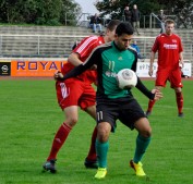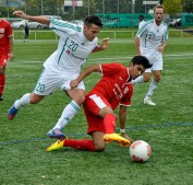 Bayram Caylak schirmt den Ball vor seinem Gegenspieler von der SpVgg.Neu-Isenburg ab.