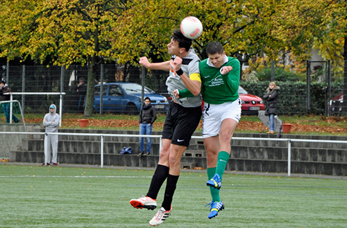 Kopfballduell des Alsbachers Maximilian Samstag (re) mit seinem Gegenspieler Grimm.