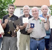 Über hervorragende Platzierungen bei den Bezirksmeisterschaften und besondere Ehrungen freuen sich die Schützen des Hähnleiner Schützenvereins. Foto: Stefan Oelsner
