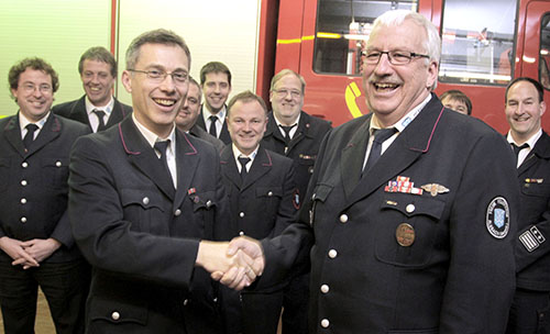 Sein Amt als langjähriger Wehrführer der Freiwilligen Feuerwehr Alsbach hat Franz Kern (re.) an seinen Nachfolger den neu gewählten Wehrführer Dr. Marcus Jung übergeben.ALSBACH (mh), Der Vereinsvorstand und die Wehrführung der Freiwilligen Feuerwehr Alsbach luden über die Vereinsbroschüre „Blaulicht“ zur Jahreshauptversammlung 2012 alle 720 aktiven und passiven Mitglieder in das Feuerwehrgerätehaus ein. mehr »