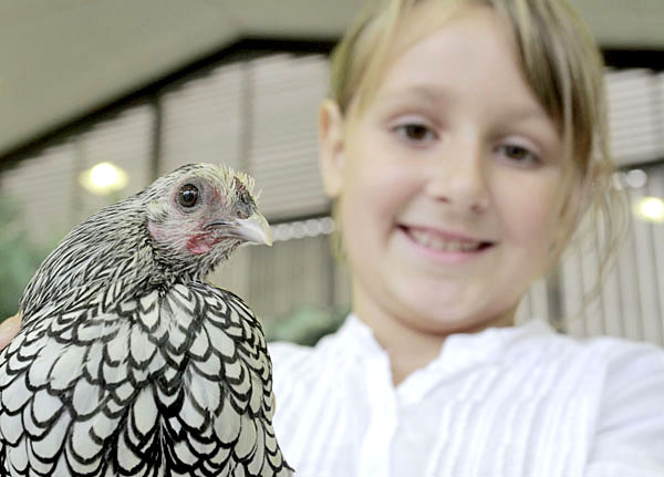 Eine der erfolgreichen Jungzüchterinnen des Vereins Emilia Reusch mit einem schön gezeichneten Sebright-Huhn.