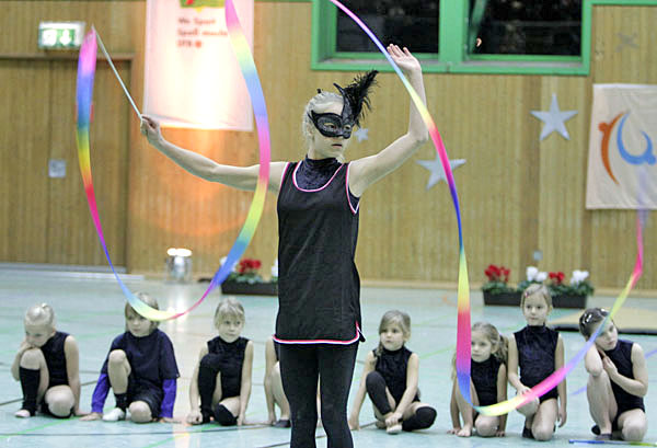 Mit bunten Bändern und schnellen Bewegungen beeindruckte die Gruppe der Rhythmischen Gymnastik die Zuschauer.