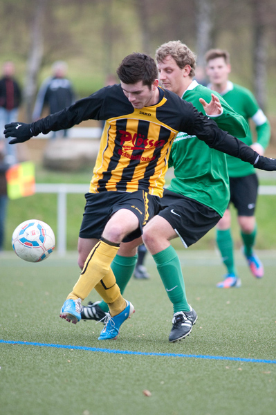 Kreisliga A Fussballspiel zwischen KSG Brandau (gelb) und FC Alsbach II (grün) auf dem Sportgelände der KSG Brandau am 25. November, 2012. Endergebnis 4-5.