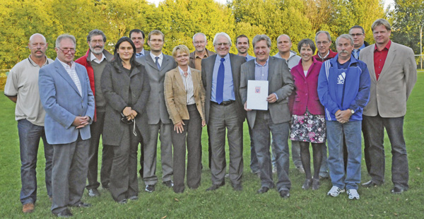Prof. Dr. Heinz Zielinski (mi.) vom Hessischen Innenministerium für Sport übergab den Förderbescheid im Rahmen einer Feierstunde an den SKV Hähnlein.