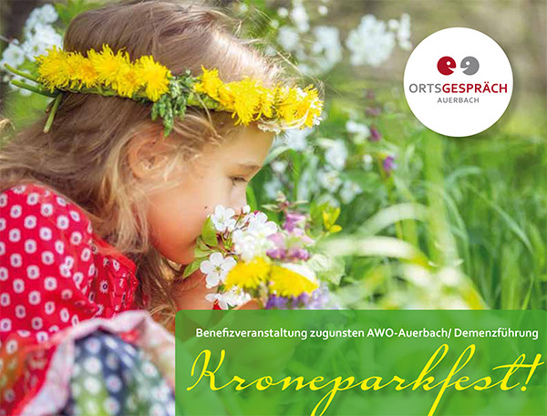 AUERBACH, Juni 2017 (meli), Auf einen schönen Samstag mit Aktionen und Genuss dürfen sich die Besucher des Auerbacher Kroneparks am Samstag, 17. Juni freuen, Denn: Die Vorbereitungen für das „Kroneparkfest“ sind abgeschlossen und viele Auerbacher Gruppen beteiligen sich an der Benefizveranstaltung zugunsten von Demenzführungen für Gruppen der AWO-Auerbach. mehr »
