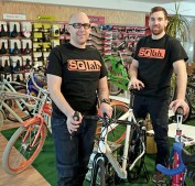 Fahrräder individuell auf die Wünsche ihrer Kunden abgestimmt, bauen die Fahrradexperten Marius Degenhardt (li.) und Gergely Kokas aus ausgewählten Komponenten in der eigenen Werkstatt zusammen. Foto: soe
