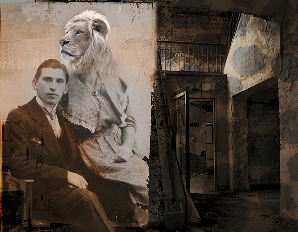 „Löwenspiele“, eine Fotocollage von Erika Heine und Klaus Blecher.