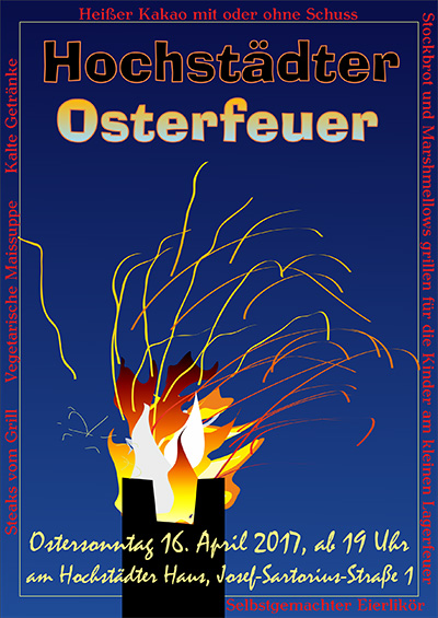 Der Förderverein Heimatpflege Hochstädter e.V lädt zum Osterfeuer ein.