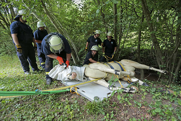 Die Aufgabe lautete Pferdedummy Sam aus einem Graben, hier die Lauter, unter Anwendung der erlernten Techniken zu „retten“. Foto: soe