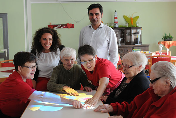 Die neue Tovertafel ist speziell für mittelschwere Demenz entwickelt worden. Gerne ließen sich die Senioren auf das Spiel mit dem interaktiven Tisch ein. Foto: Eva M. Wicht