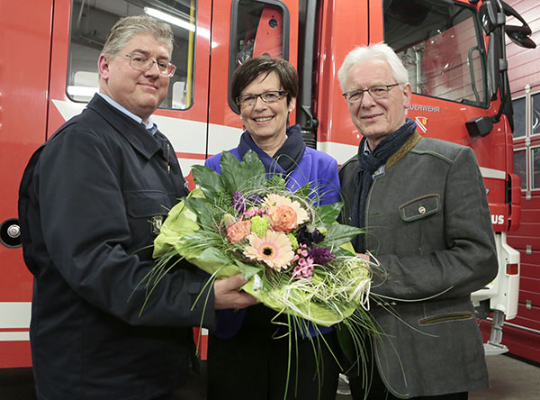 Zum ersten Ehrenmitglied der Freiwilligen Feuerwehr Bickenbach wurde der ehemalige Bürgermeister Günter Martini ernannt, hier mit Gattin Gudrun und Gemeindebrandinspektor Andreas Daniel. Foto: soe
