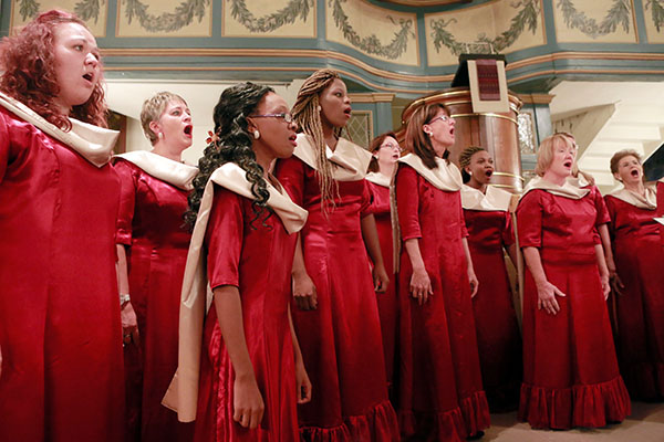 vielfach ausgezeichnete Chor „Femme Vocale“ aus Namibia bei seinem Konzert zusammen mit dem Bickenbacher Chor „Klangfarben“. Foto: soe
