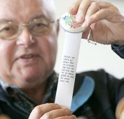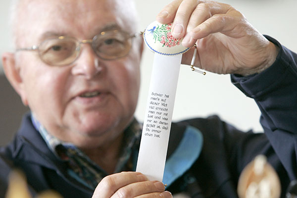 Selbstgemachte „Spruchband-Eier“ in kreativem Dekor mit vielen unterschiedlichen Sinnsprüchen für jeden Zweck sind das seltene Kunsthandwerk von Stefan Binder aus Pfungstadt. Foto: Stefan Oelsner