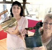 Leihgeberin Margit Franz (re) mit der ersten Vorsitzenden des Museumsvereins Bickenbach Ulrike Scheele. Foto: Stefan Oelsner