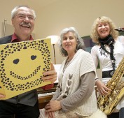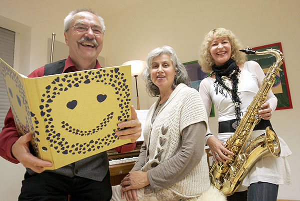 Mit Lyrik und Liedern zum Müßiggehen, den Alltag anders wahrzunehmen, ermutigten Jürgen Scherer, Birgit Köhler-Günter und Evia Hirt von der Gruppe „Myriks“ die Zuhörer ihres Konzertes „Die süße Lust des Müßiggangs“ in der Bickenbacher Hans-Quick-Schule. Foto: Stefan Oelsner