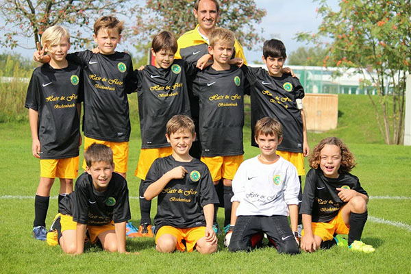 Stolz auf ihr neues Outfit - die E2 Jugend der SKG Bickenbach.