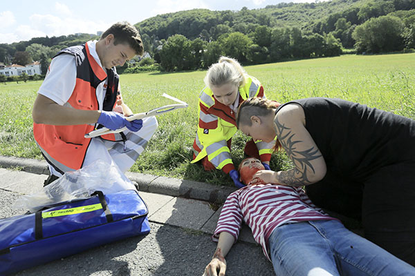Die Erstversorgung von Verletzten war eines der wichtigen Themen und stand im Mittelpunkt beim Praxistraining der Johanniter. Foto: soe