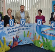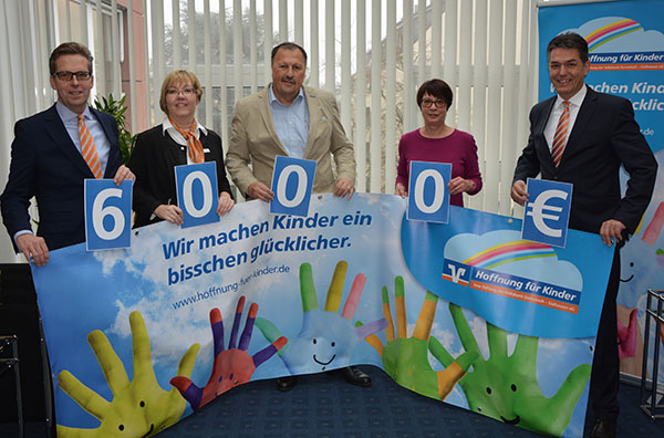 Matthias Martinè und die Stiftungsbeauftragte Petra Raiß („Hoffnung für Kinder“), Rudolf Starck und Gisela Kranz („Hilfe für krebskranke Kinder“) sowie Michael Mahr („Hoffnung für Kinder“).
