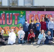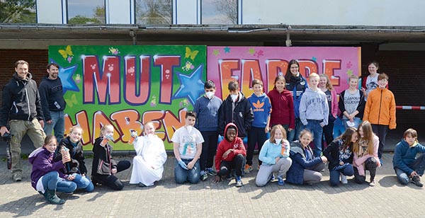 Das Workshop-Team posiert stolz vor ihrem fertigen "Kunstwerk".