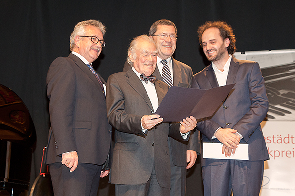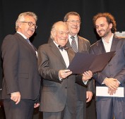 Roman Scheidel,Preisträger Hans Drewanz, Peter Benz und und Kushtrim Gashi. Foto: U. Döring