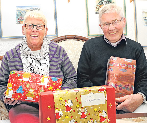 Ute und Helmut Horn unterstützen tatkräftig die Aktion Weihnachtsgeschenke für Kinder in Osteuropa.