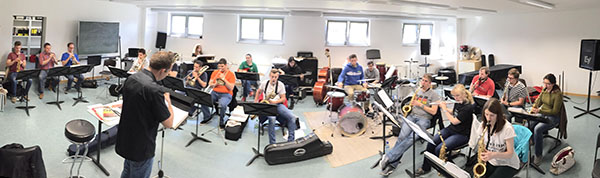 Die Gernsheimer Bigband zum Jubiläumskonzert ein.