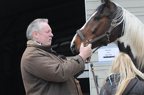 "Schätzelein...." Auch die Pferde werden von Tamme Hanken ordentlich begrüßt. Foto: Eva M. Wicht