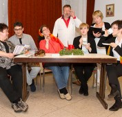 Mit den sehr speziellen Verhaltensweisen der Mitbewohner ihrer Tochter Agnes (Sabrina Florek, mitte sitzend) muss sich Mutter Cecile (Alexandra Sbezzo) bei ihrem Besuch in der offenen Wohngruppe erst noch anfreunden. Foto: soe