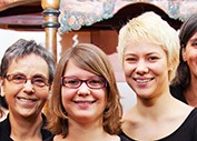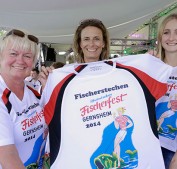 Was wäre das Gernsheimer Fischerfest ohne das legendäre Fischerstechen. Unser Foto zeigt (v.li.) Agi Mager, Dagmar Schmitt und Anne Schäfer. Foto: soe